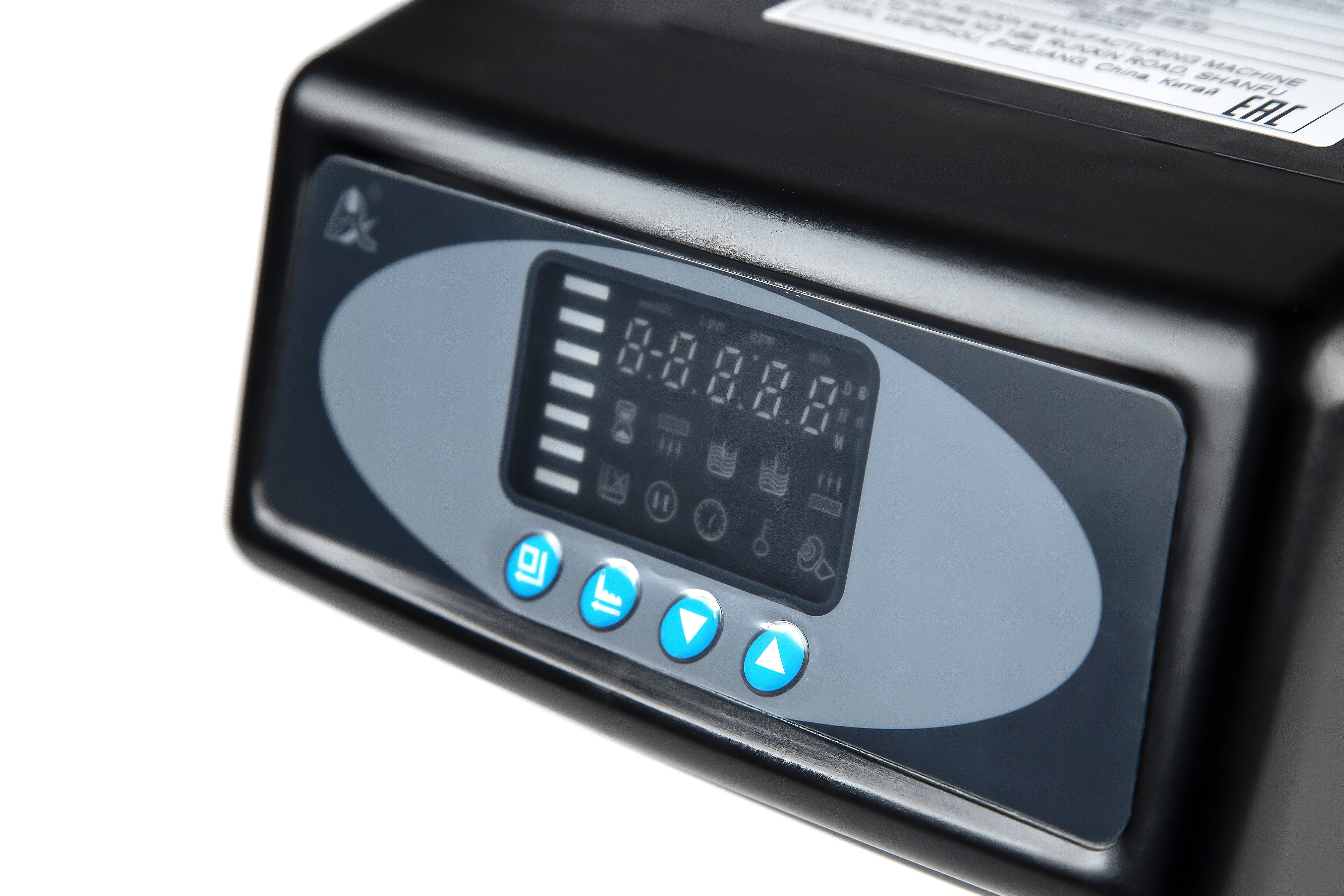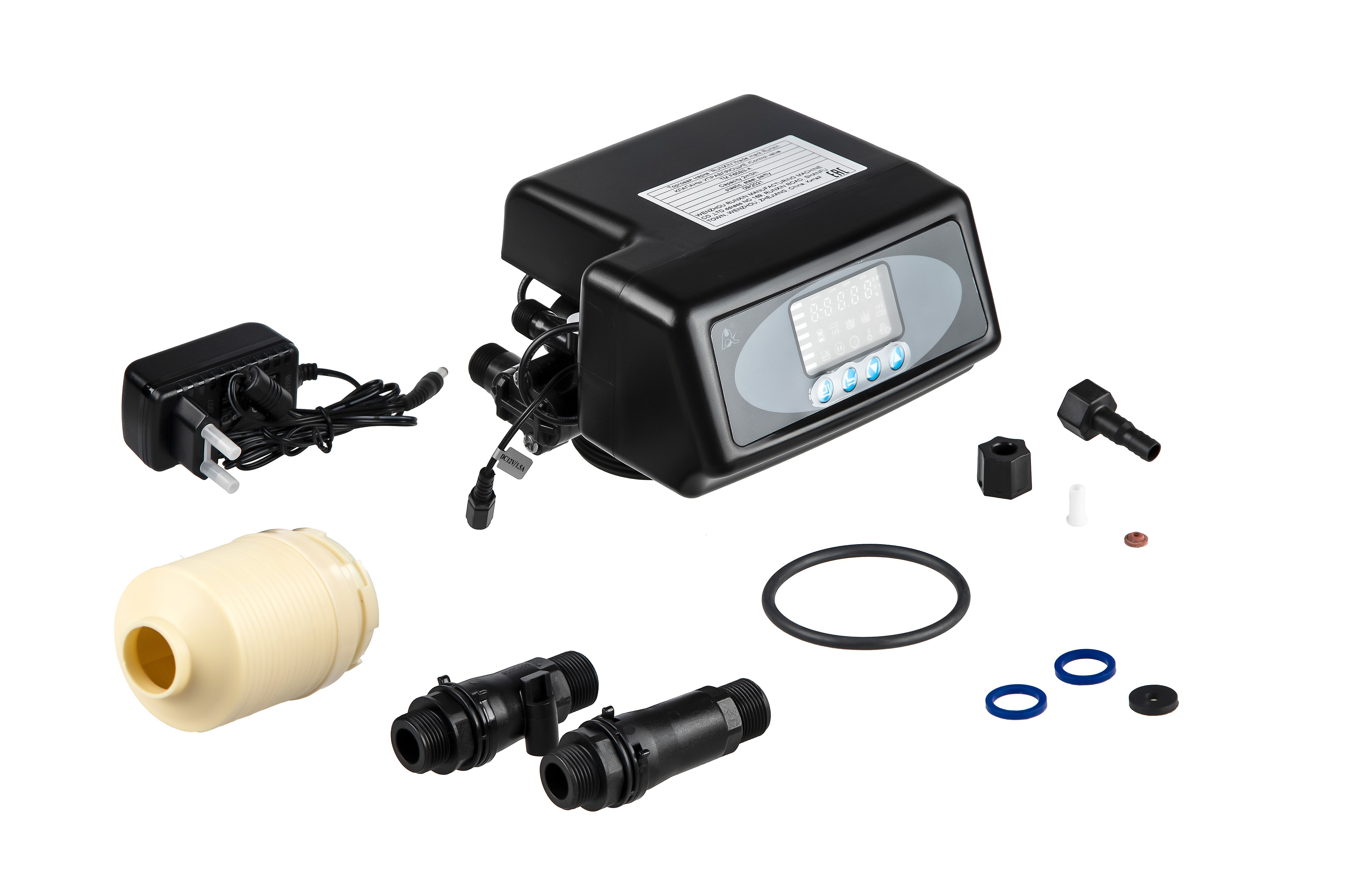 Блок управления автоматический по объему отфильтрованной воды реагентный для умягчителей. Предназначен для коммутации потоков воды внутри корпуса скорого фильтра с зернистой загрузкой.