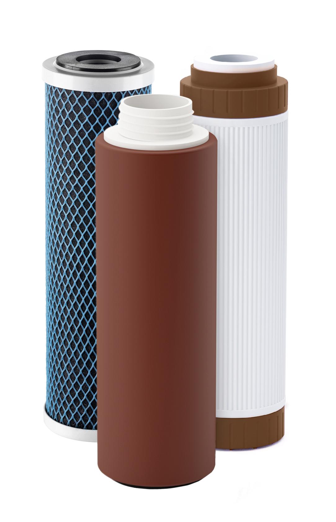 Комплект сменных картриджей для комплексной очистки воды, удаления железа и бактерий. Подходит для трехступенчатых систем фирмы Гейзер серии БИО.