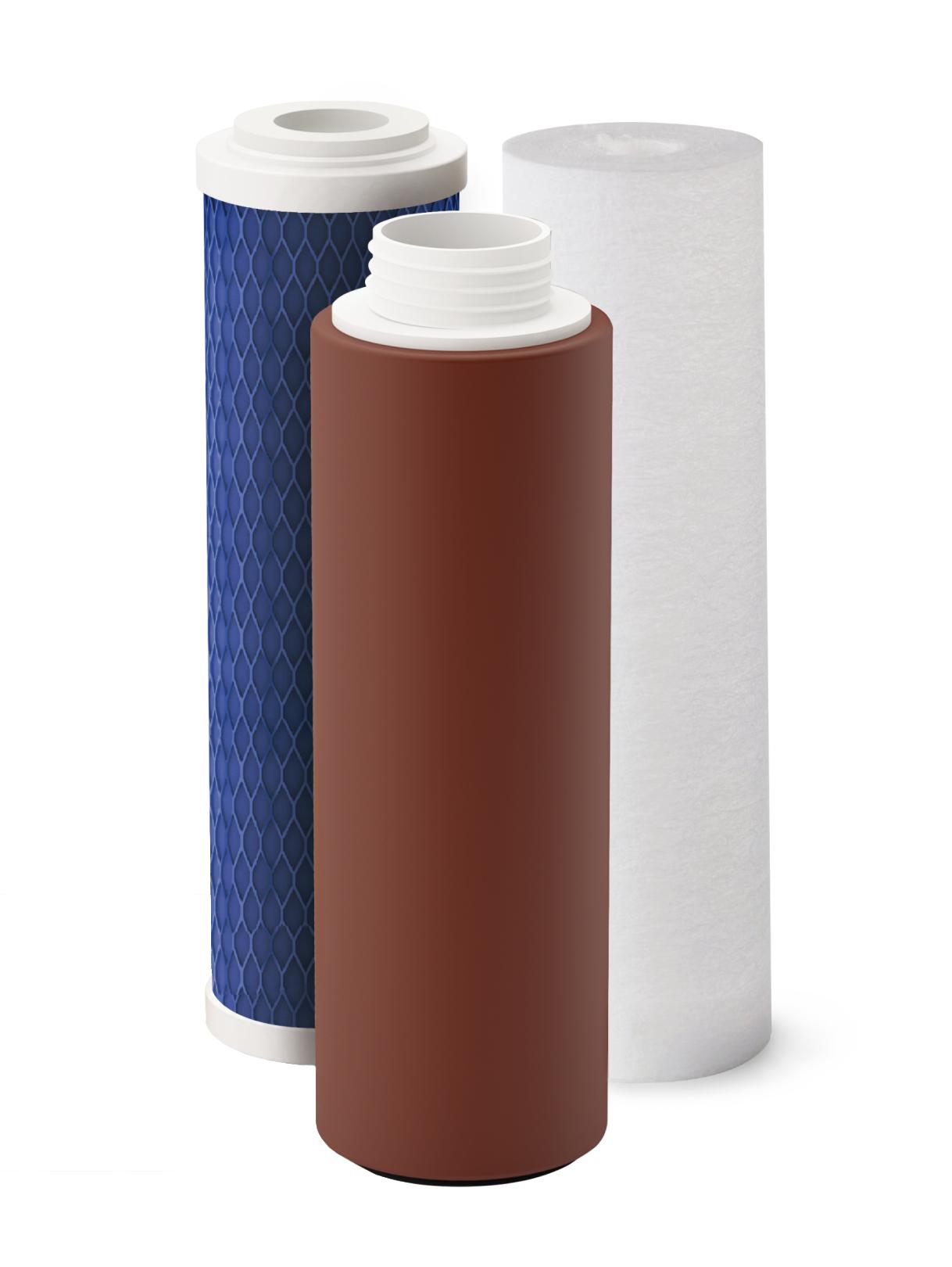 Комплект сменных картриджей для комплексной очистки, удаления солей жесткости и обеззараживания воды. Подходит к фильтрам Гейзер серии БИО.
