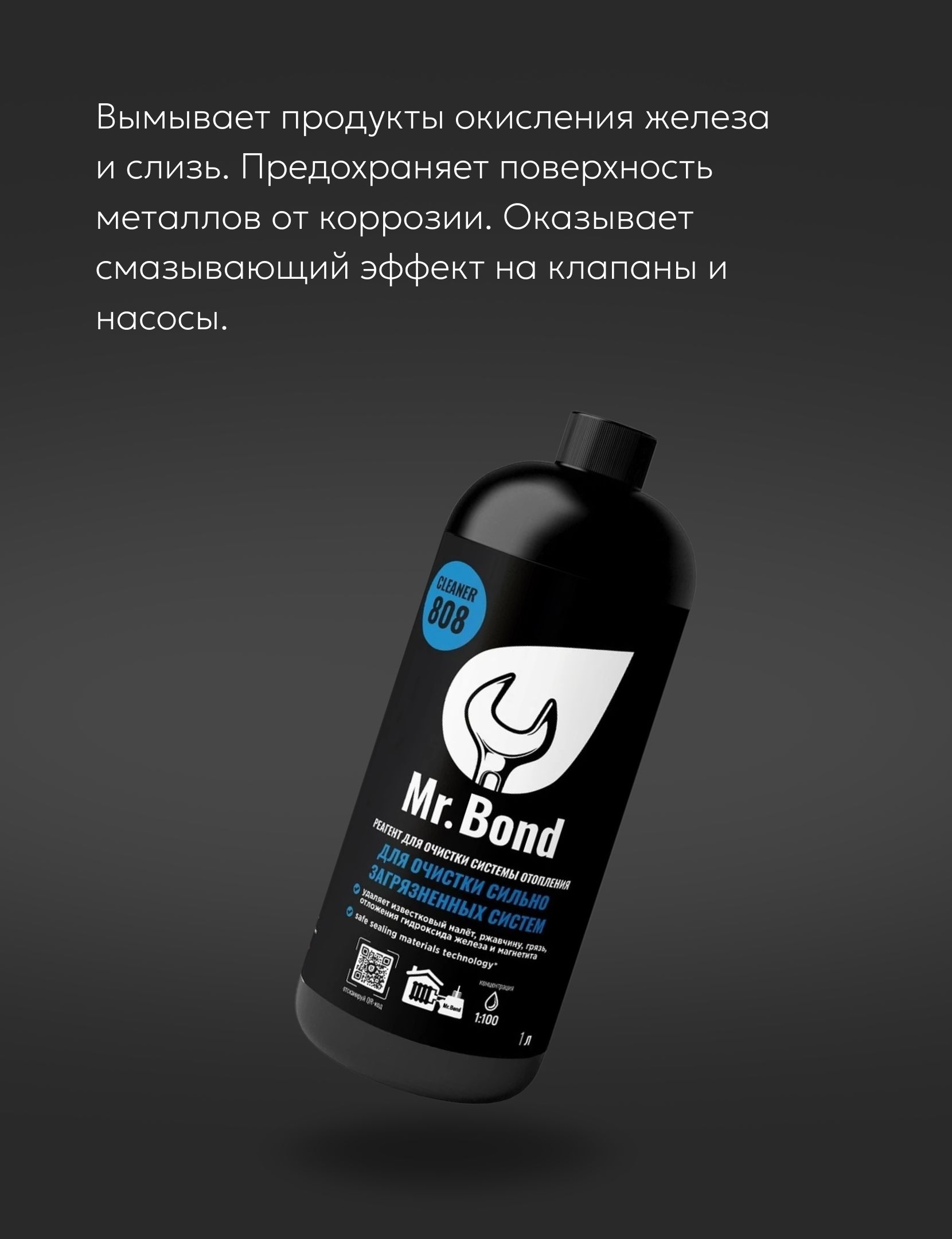 Реагент 808 для очистки сильно загрязненных систем отопления Mr.Bond Cleaner, 1 литр