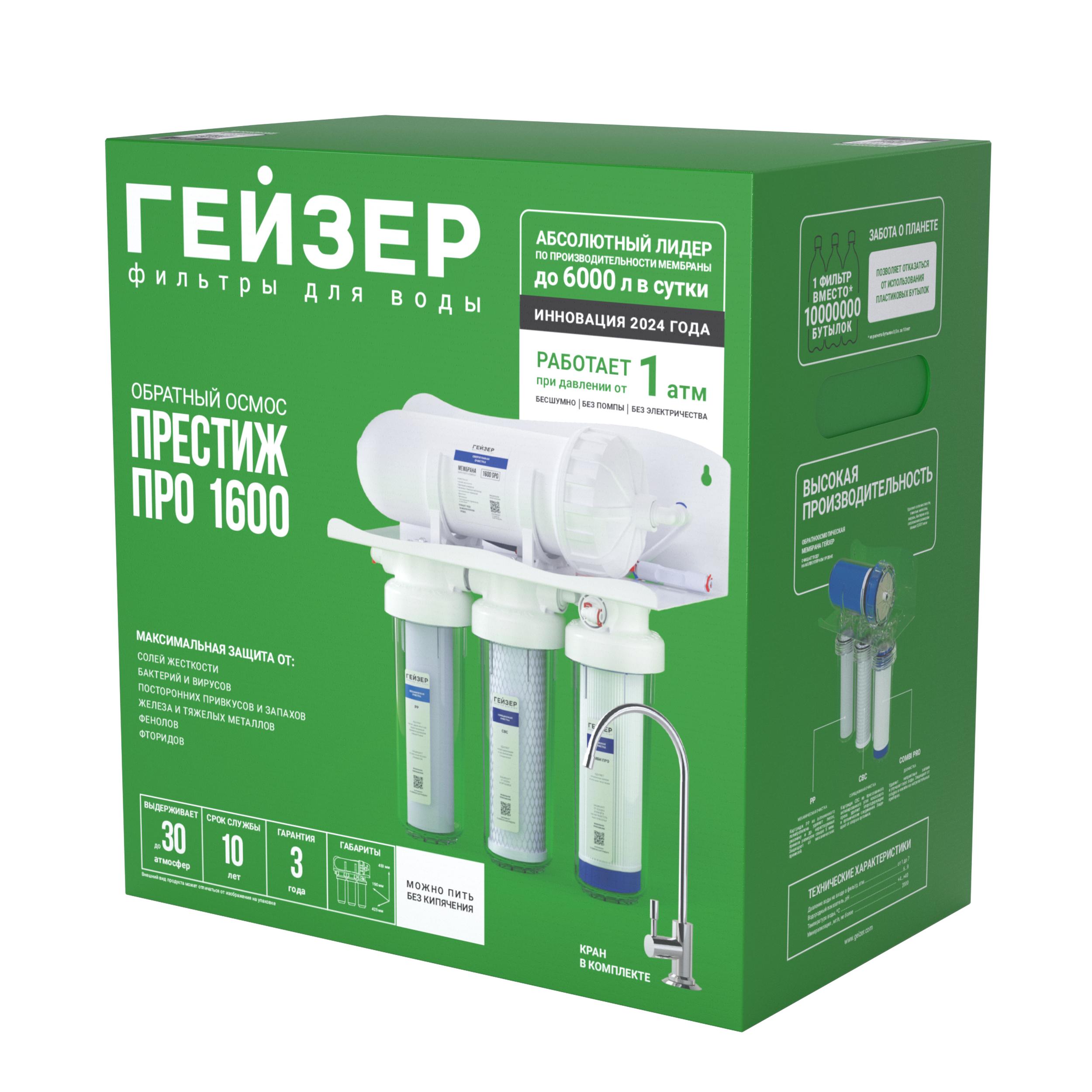 Гейзер Престиж Про 1600 проточный обратный осмос без бака, 3 ступени