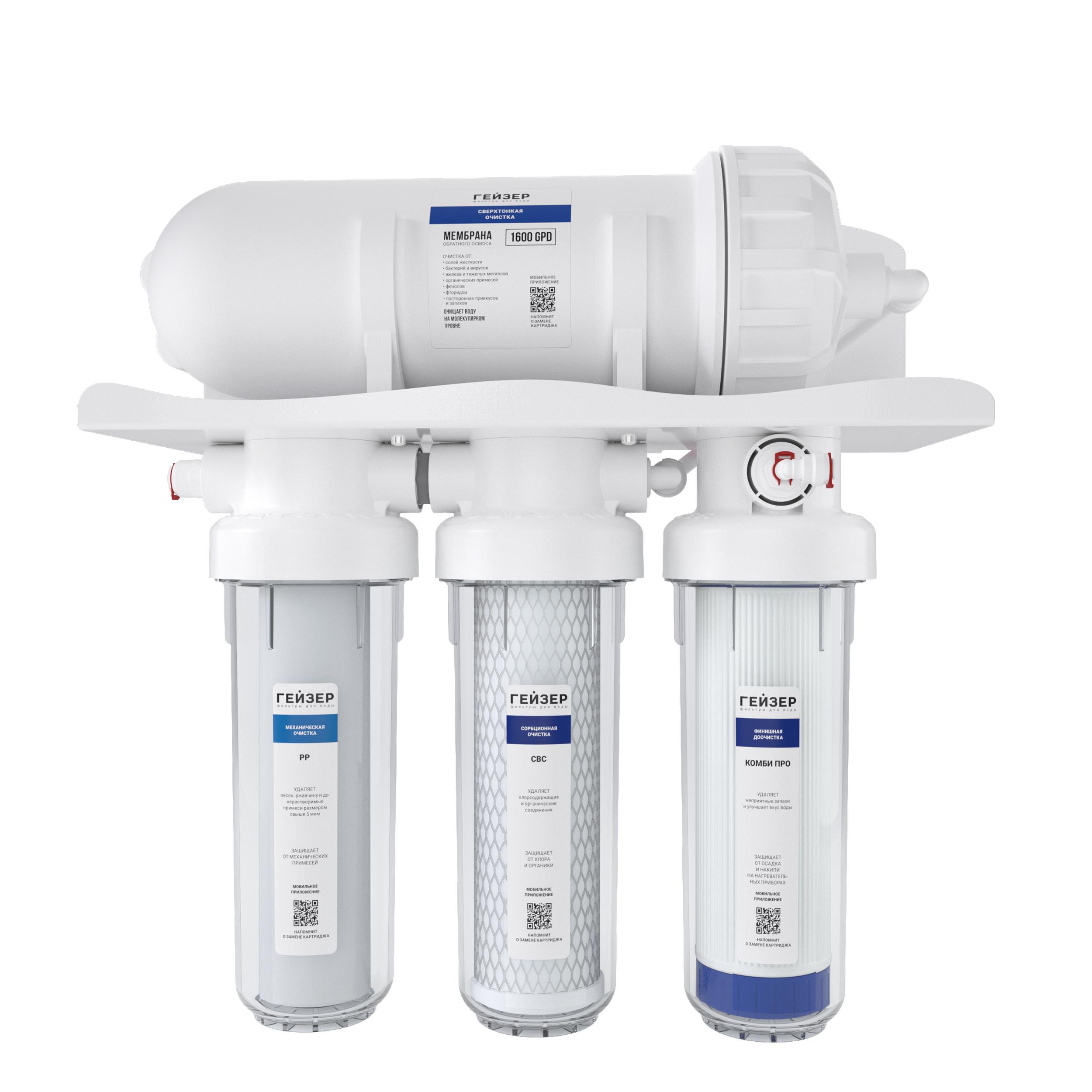 3-ступенчатый проточный обратноосмотический фильтр Гейзер Престиж ПРО 1600 без бака
