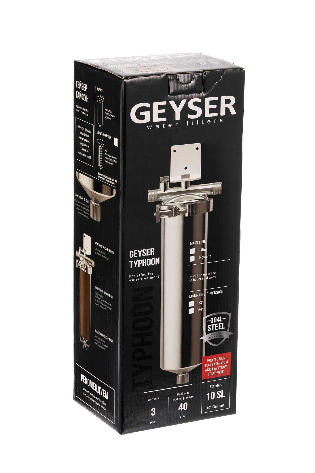 Корпус для магистрального фильтра Гейзер "Тайфун" из нержавейки 10SL, 3/4"