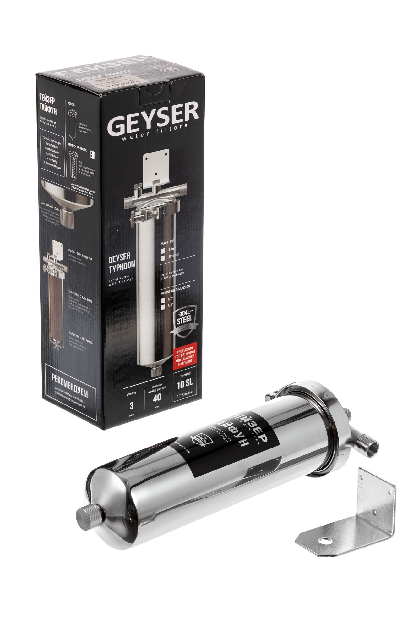 Корпус фильтра Гейзер "Тайфун" из нержавейки 10SL, 1/2"