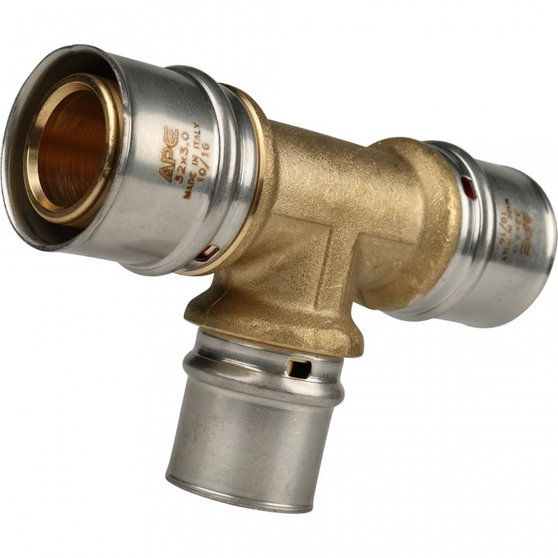 Переходной тройник под пресс. Подходит к серии фитингов STOUT для металлопластиковых труб.