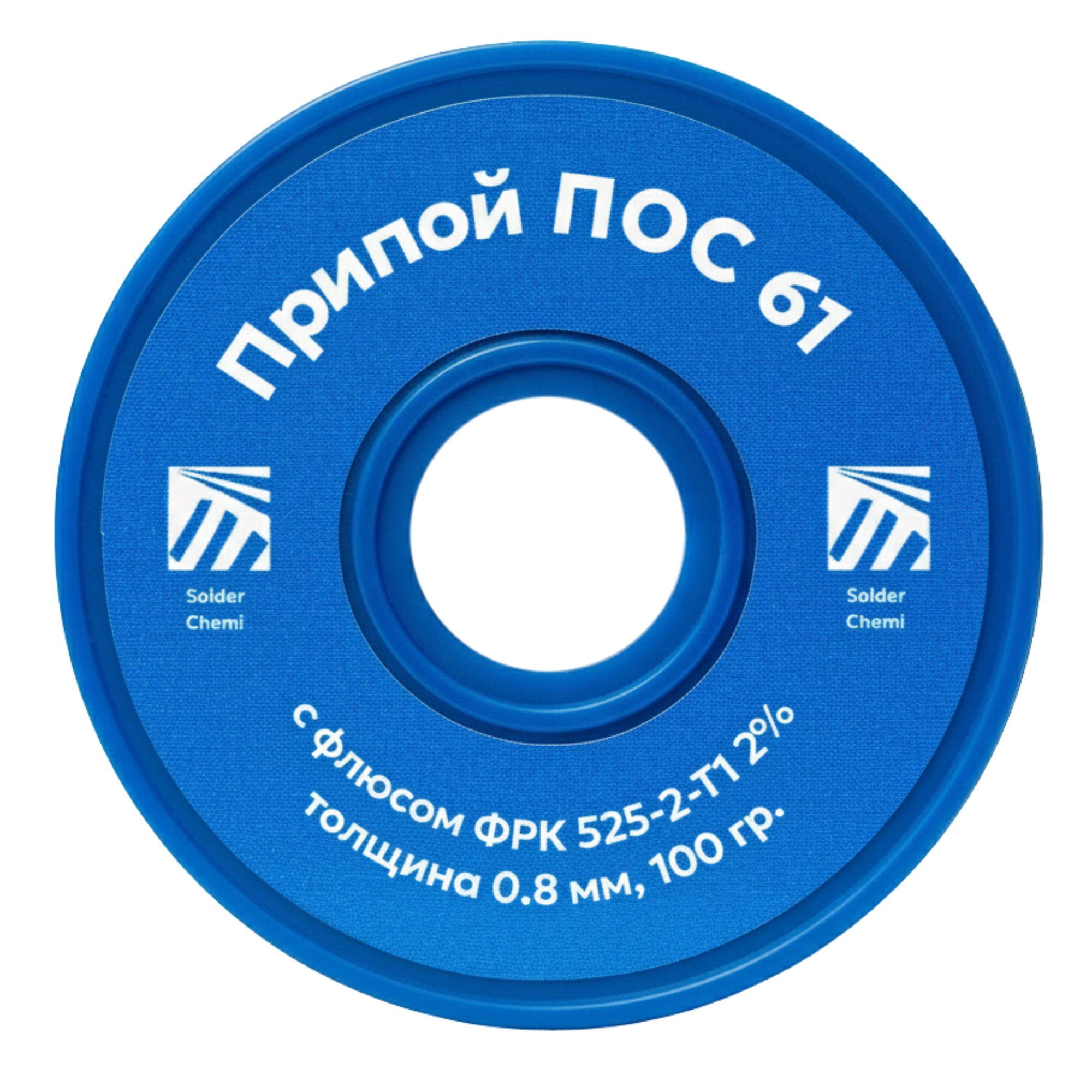 Припой ПОС 61 с флюсом ФРК 525-2-Т1 2%, 0.8 мм, 100 гр. Solder Chemi (Россия)