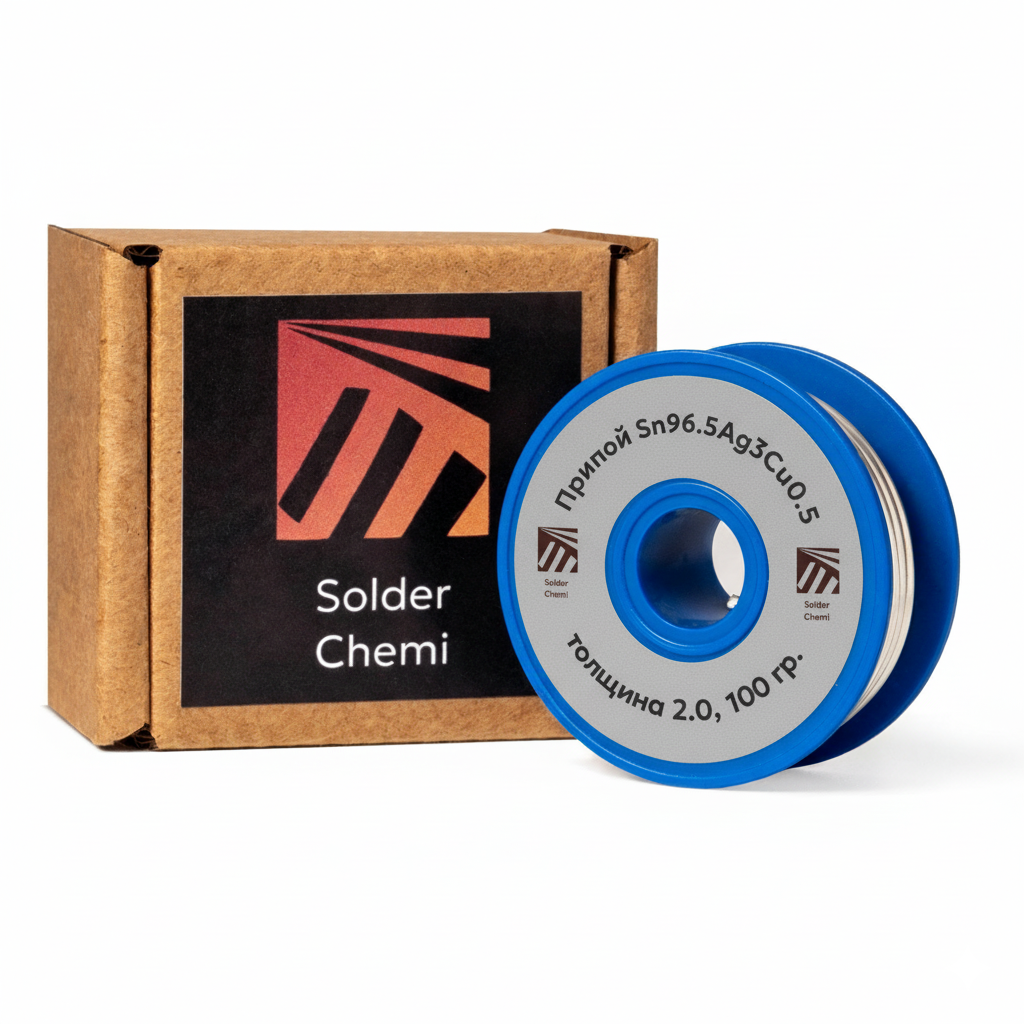 Припой с серебром Sn96.5Ag3Cu.5, толщина 2.0, 100 гр., SAC305, Solder Chemi (Россия)