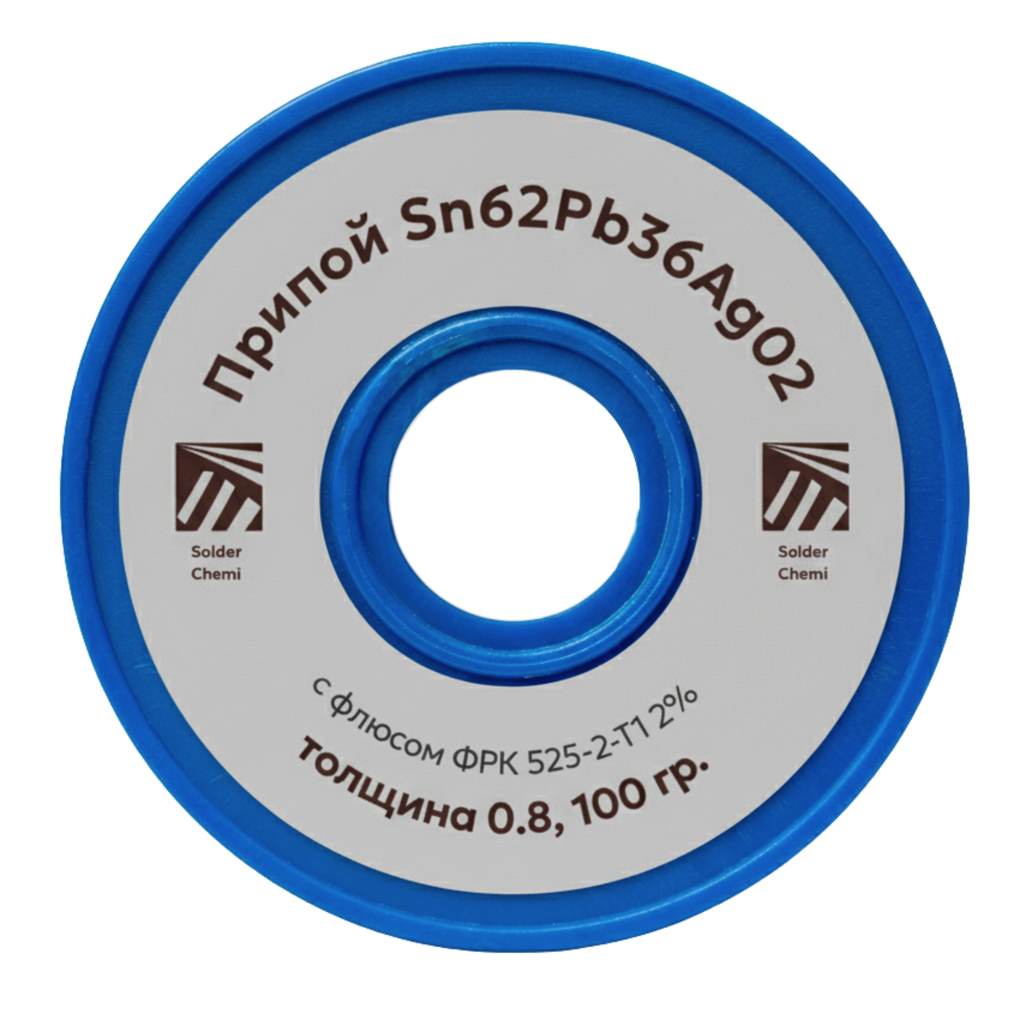 Припой серебросодержащий Sn62Pb36Ag02, 0.8 мм, 100 гр., с флюсом ФРК 525-2-Т1 2%, Solder Chemi