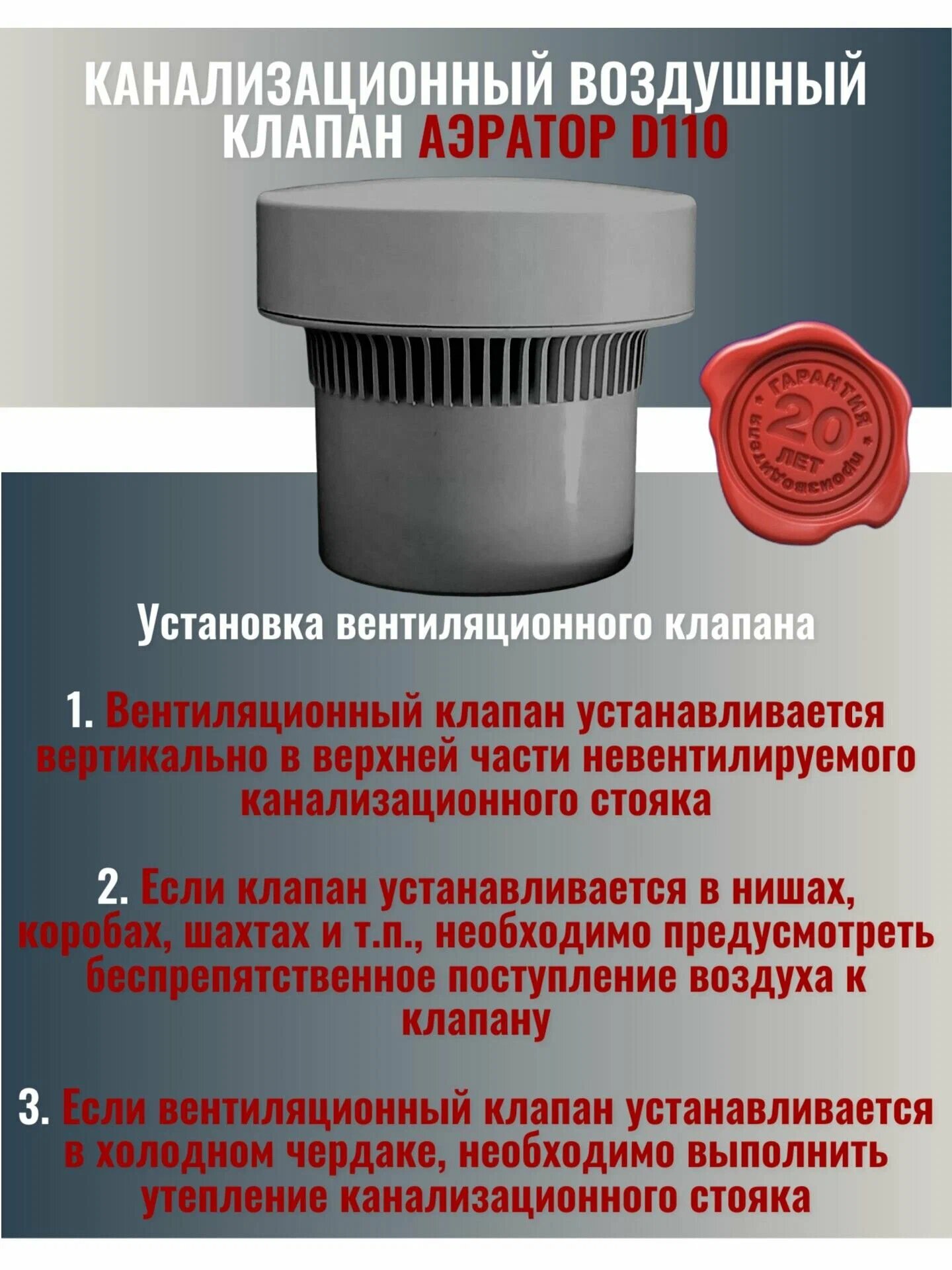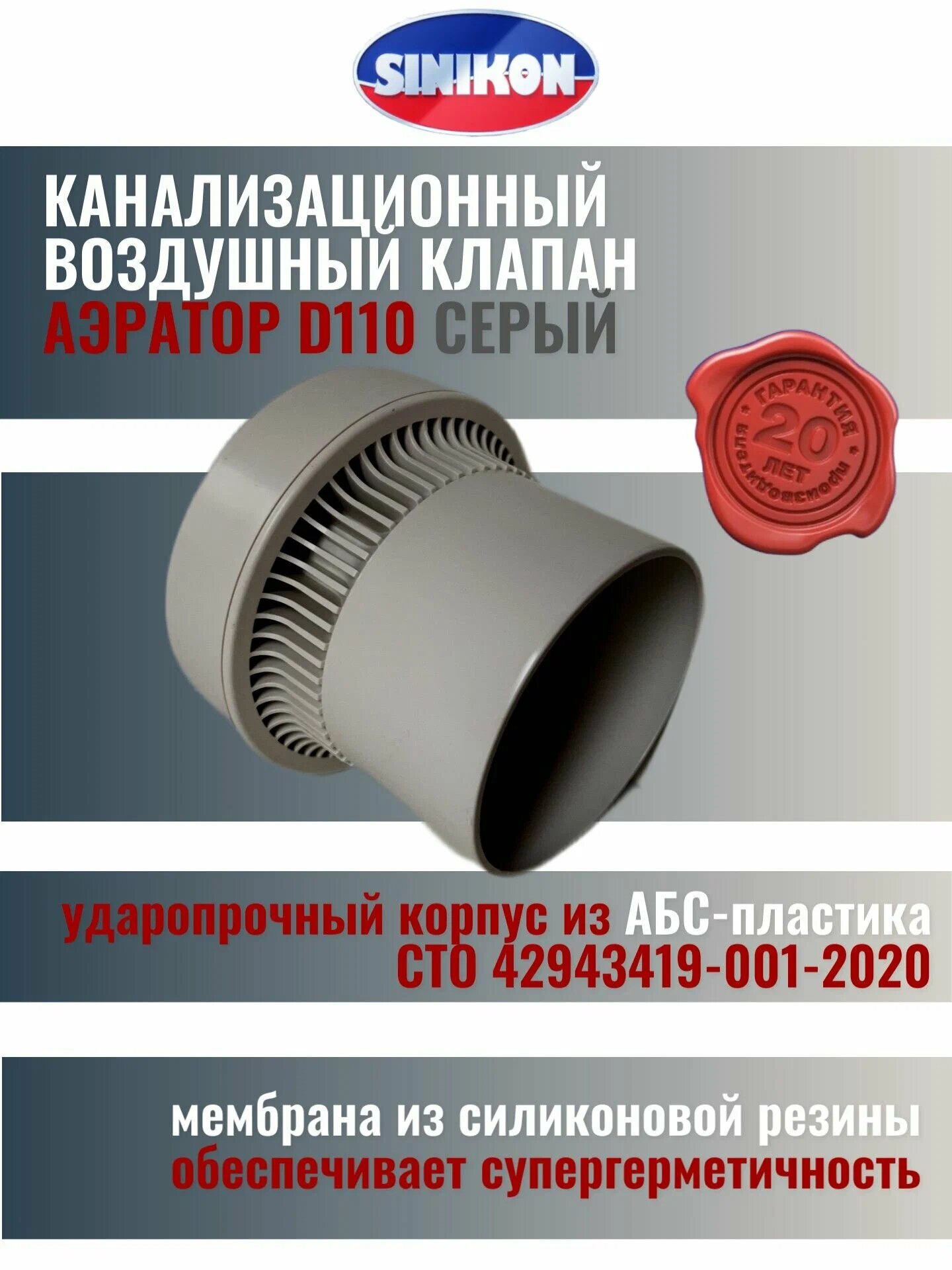 Полипропиленовый аэратор SINIKON для внутренних безнапорных канализационных систем.