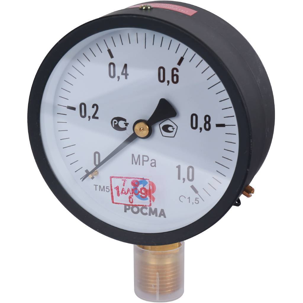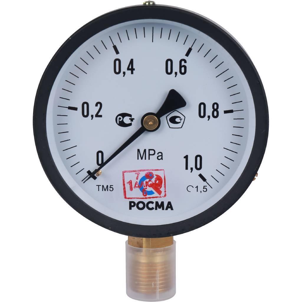 Манометр радиальный d=100 мм, подключение 1/2", до 10 бар (0-1,0 МПа) ТМ-510 P.00 РОСМА