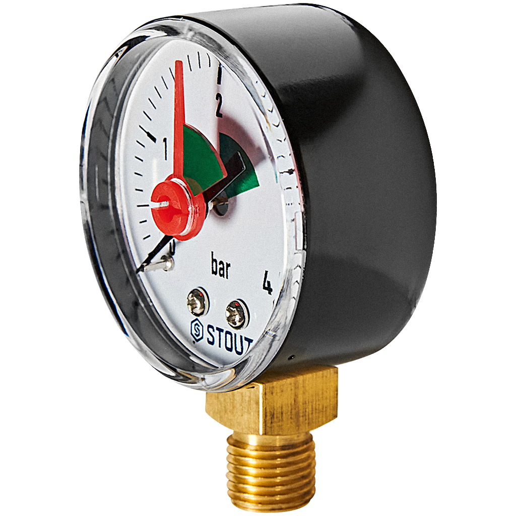 Манометр аксиальный STOUT 1/4 "х 50 мм 4 бар с указателем предела