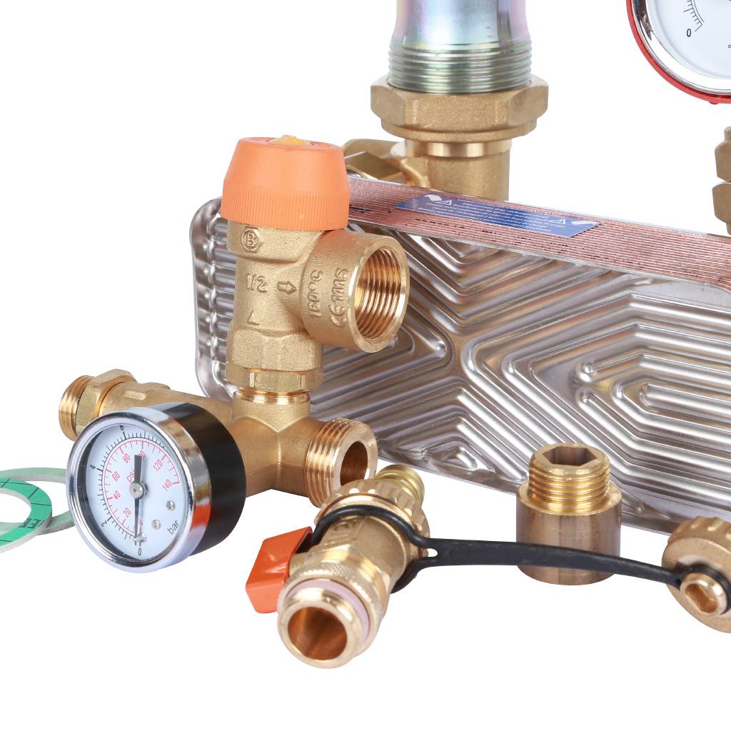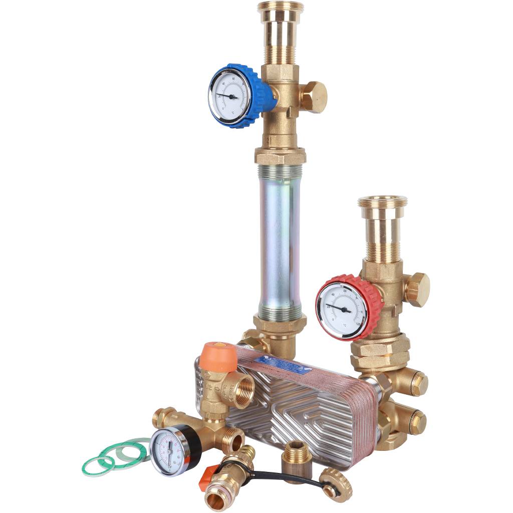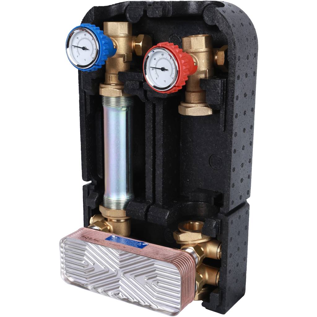 Насосная группа 1" / 1 1/2" с теплообменником 18 пластин, STOUT без насоса в теплоизоляции