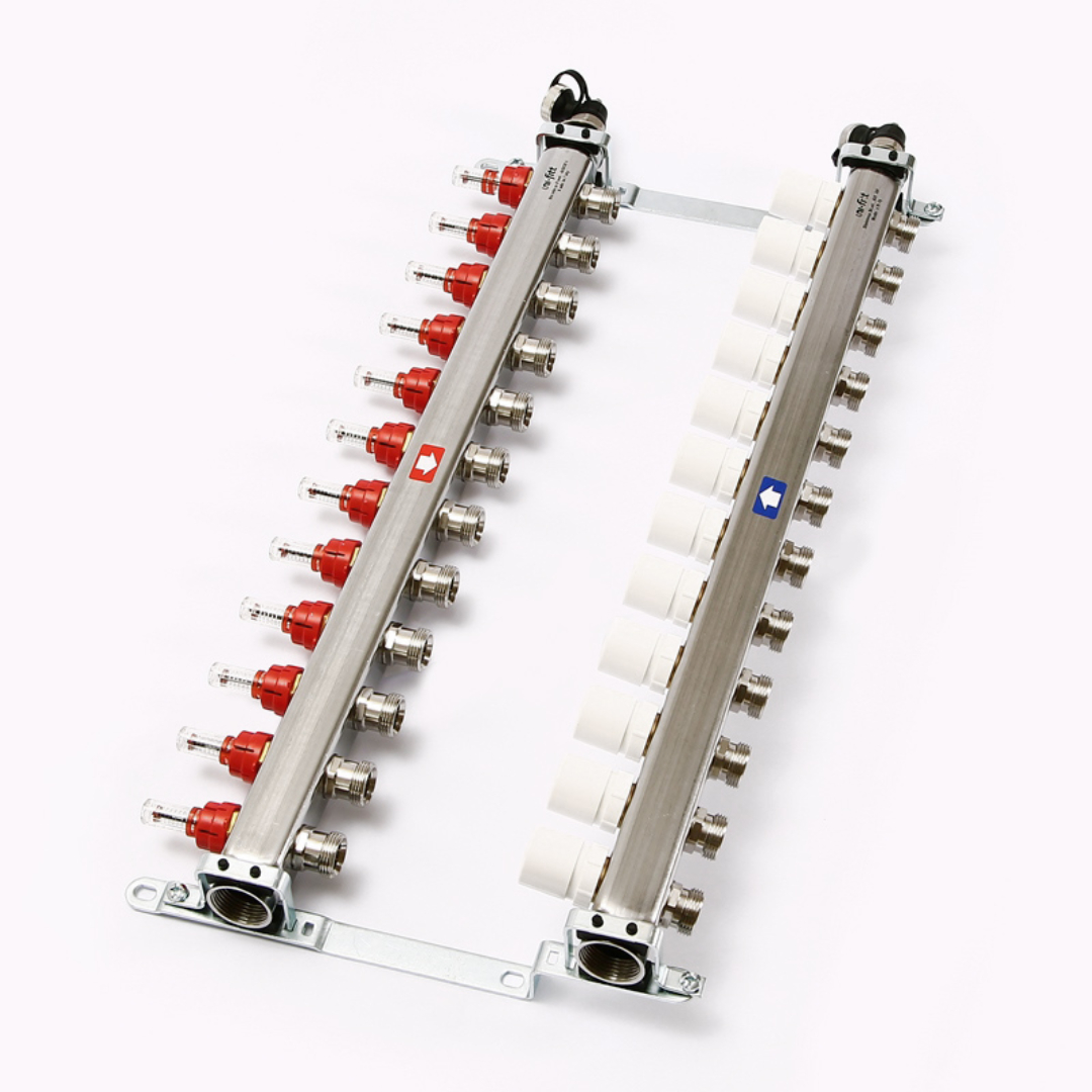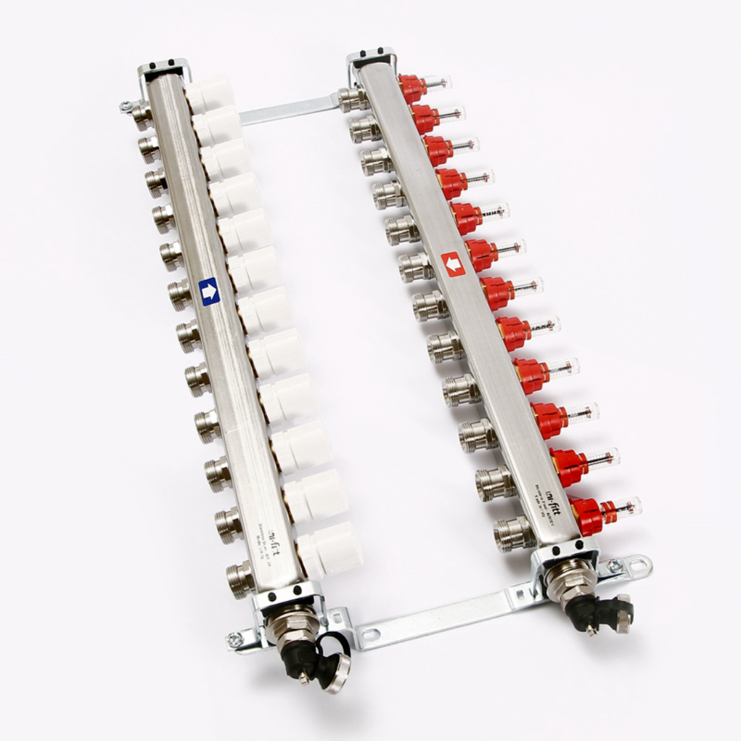 Коллекторные группы Uni-Fitt предназначены для распределения и регулирования потоков теплоносителя в низко- или высокотемпературных системах отопления. Оснащены расходомерами на подающем коллекторе и термостатическими вентилями (с возможностью установки термоэлектрических приводов) на обратном коллекторе. Каждое изделие укомплектовано дренажным клапаном / воздухоотводчиком, который может быть использован для заполнения системы.