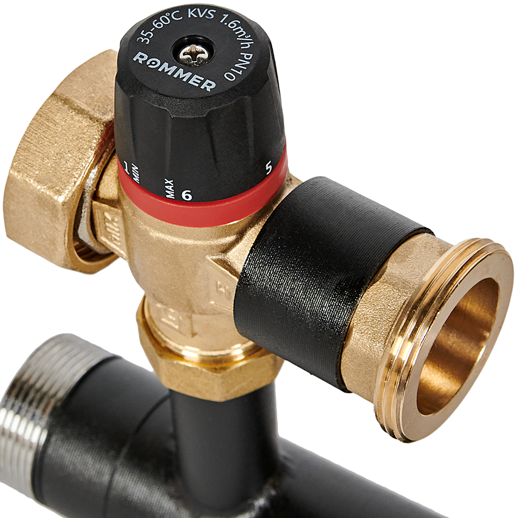 Насосная группа 1" ROMMER с термостатическим смесительным клапаном (35-60°С) без насоса