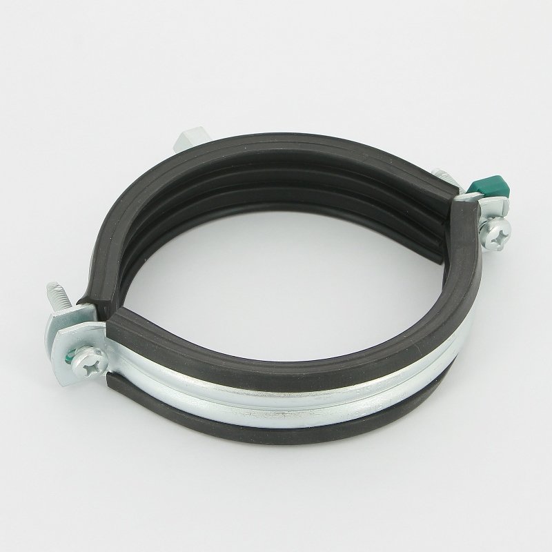 - при закрытом хомуте труба лежит на вкладыше из мягкой черной резины, что увеличивает шумопоглощение;