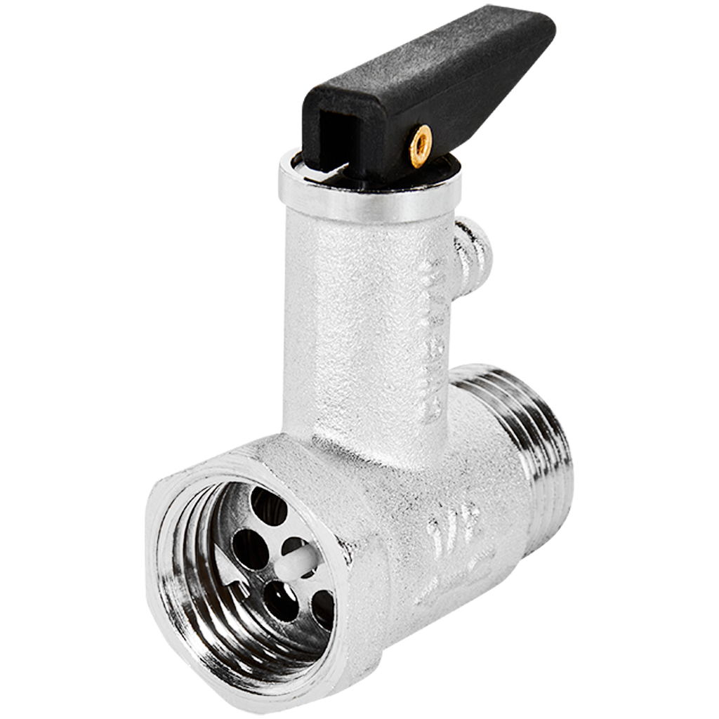 Клапан ROMMER представляет собой совмещенную конструкцию из обратного и предохранительного клапана. Давление срабатывания - 7 бар. Модель оснащена флажком для ручного сброса воды.