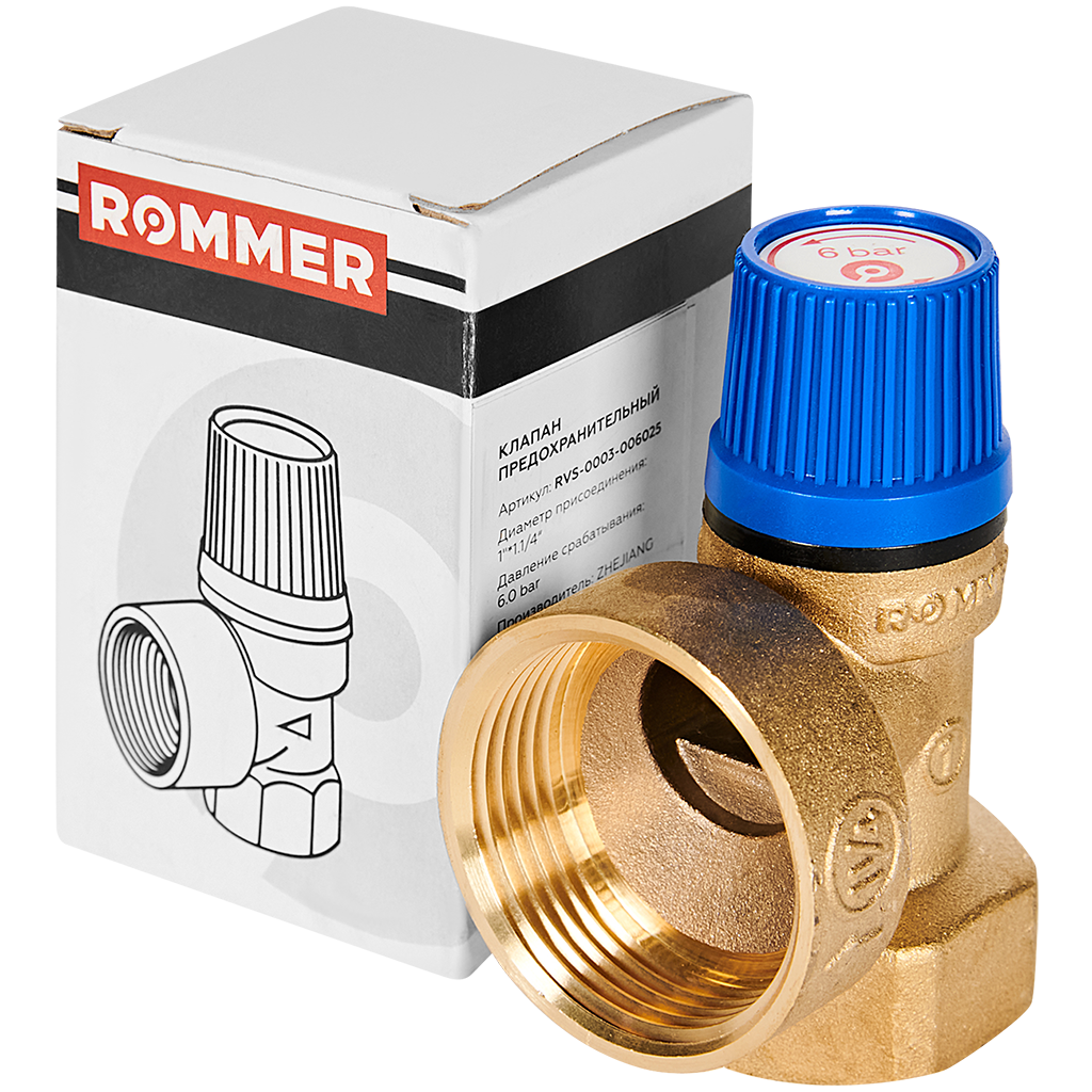Клапан предохранительный 1 х1 1/4 ROMMER системы водоснабжения 6 бар