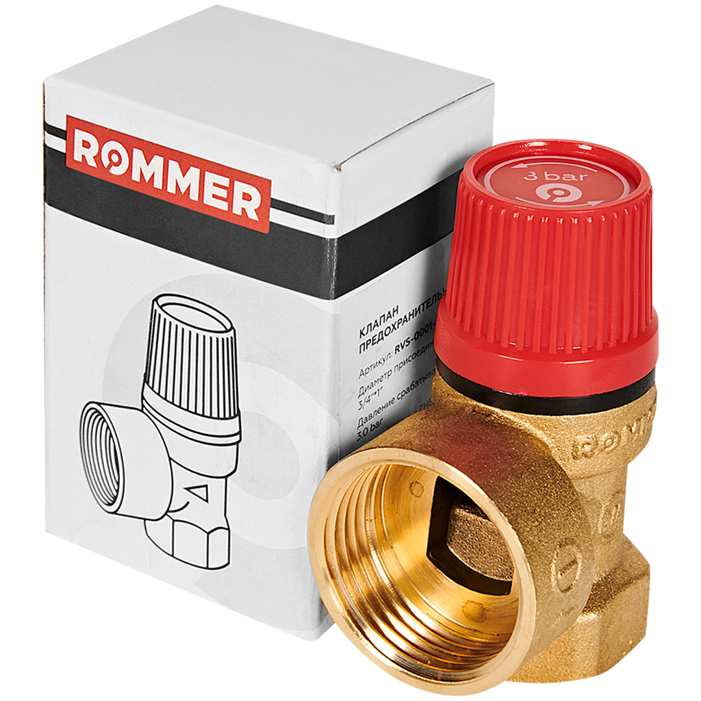 Клапан предохранительный 3/4х1 ROMMER для отопления 3 бар