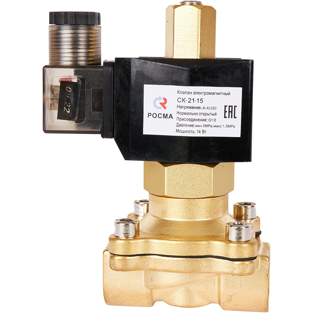 Клапан соленоидный 1/2" СК-21-15 ВВ НО, 220 В РОСМА